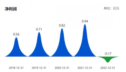 纵观近5年的净利润情况,2018-2022年净利润分别为0.56/0.71/0.82/0.94/-0.17亿元,2021年净利润为5年内最高,2022年净利润有所下滑,为-0.17亿元。