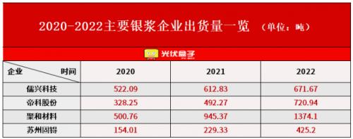 如今,几大银浆龙头企业的出货量也是急速猛增,市面上主要的几家银浆企业分别是儒兴科技、帝科股份、聚和材料和苏州固锝。