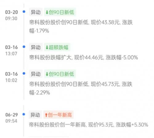 根据帝科股份地行情了解到,今年3月16号开始帝科股份降幅加大一周内两次创90日新低,3月16号当日收盘价为43.83元,触及今年最低点,紧接着帝科股份开始反弹,一路猛涨,到6月29日交易现价,创下一年内新高,当日收盘价为94.38元,短短3个半月的时间帝科股份股价直接暴涨115%。