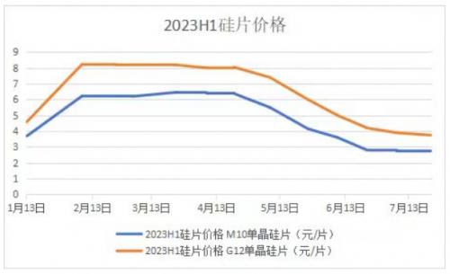 开年以来,光伏全产业链价格震荡暴跌,硅料、硅片价格首当其冲。N型硅片由年初的8.35元/片,在7月逐步跌落至3.8元/片左右。所以,今年上半年下游装机需求高涨,但中环营业收入却没有同步跟进。