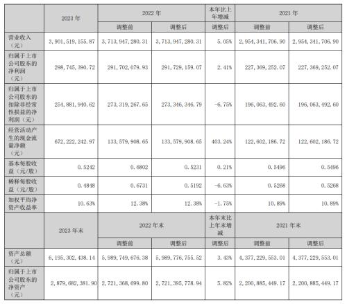 4月16日,回天新材发布2023年年度报告,数据显示,回天新材2023年实现营业收入39.02亿元,同比增长5.05%;实现归属于上市公司股东的净利润2.99亿元,同比增长2.41%。