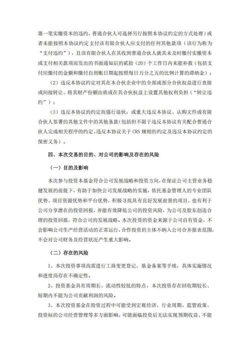 迈为股份表示,本次参与投资本基金符合公司发展战略和投资方向,在保证公司主营业务稳健发展的前提下,有助于加快公司发展战略的实施,依托基金管理人的专业团队优势、项目资源优势和平台优势,积极寻找具有良好发展前景的项目,也有利于公司分享潜在的投资回报,并能有效降低公司的投资风险,为公司及股东创造合理的投资回报,符合公司的发展战略。本次投资的资金来源于公司自有资金,不会影响公司生产经营活动的正常运行,合作投资的主体不纳入公司合并报表范围,不会对公司财务及经营状况产生重大影响。