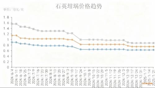 而2024年6月,石英坩埚均价还在1万元左右,到了2025年7月就已跌至6千元,萎缩了30%-40%。