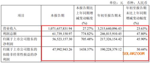 从年初至报告期末,科林电气营收达到32.16亿元,同比增幅为23.63%;净利润2.17亿元,同比增幅达45.90%。公司解释业绩大幅增长主要源于“生产经营稳步增长”和“上年第三季度基数较低”。