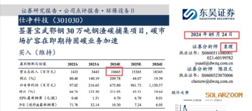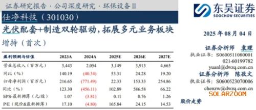 2025年8月,东吴证券的袁理和陈孜文发布了题为《光伏配套+制造双轮驱动,拓展多元业务板块》的报告。而在这篇报告中,针对仕净科技2025年和2026年营收,给出的预测分别为为31.49亿元、39.13亿元,净利润为0.22亿元和1.53亿元,远超实际数据。