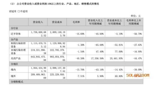 从结构看,光伏并未如预期成为第二增长曲线。2024年,光伏电池片业务贡献收入6.44亿元,毛利率为-40.26%,属于典型的亏损销售;同年公司的核心业务板块制程污染防控设备收入的大幅减少,其降幅高达65.68%。