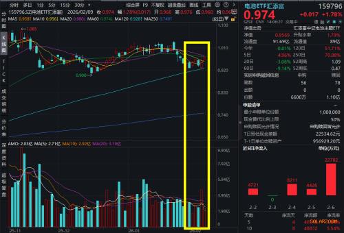 2月9日,A股市场强劲反攻,沪指涨超1%,两市超4400股上涨,太空光伏概念爆发,带动光伏、电池等新能源板块走强。截至14:15.同类费率最低档的光伏ETF汇添富(516290)放量大涨近4%,冲击两连阳,资金持续涌入,已连续2日吸金超2000万元!同类规模领先的电池ETF汇添富(159796)同样震荡冲高,涨1.78%,成交额超2.1亿元,交投活跃。