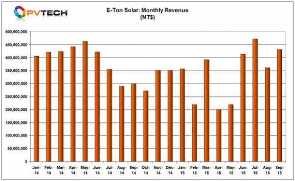 台湾太阳能电池生产商益通光能科技(E-Ton Solar Tech)日前报告,九月销售强劲反弹,继续其2015年不稳定的销售历史。
