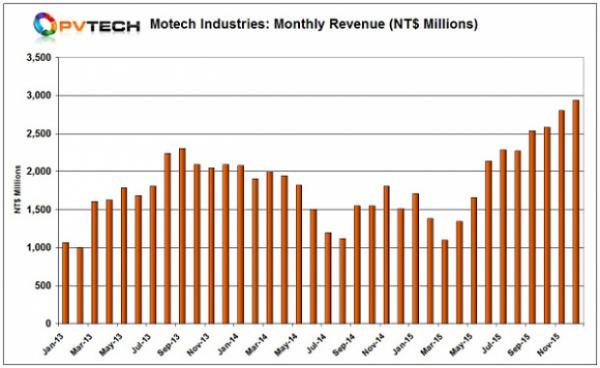 台湾商业太阳能电池生产商茂迪(Motech Industries)日前报告2015年十二月销售额达到创纪录新高,销售额连续第四个月创纪录。