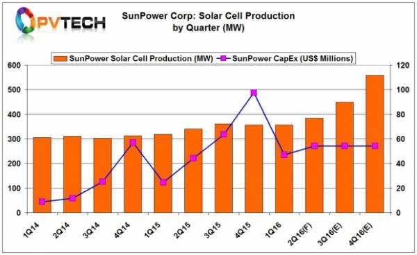 SunPower指出,预计到2016年底总产能将达到1,850MW,较2015年提高450MW。该公司过去四年每年仅实现100MW的增量。预计2016年资本支出将为2.1亿美元至2.6亿美元,而2015年资本支出为2.3亿美元。
