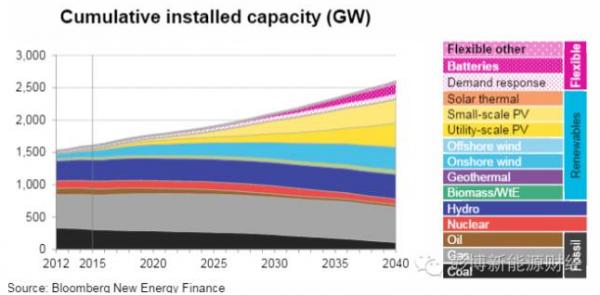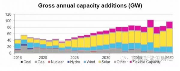 太阳能发电将实现剧增:尤其是太阳能发电产能,将由2015年的2%增至2040年的29%。太阳能发电部署将在2020-2029年期间开始增长,原因是本地部署成本将降低至全球平均水平。此外,“灵活产能”也将一并增长,以便适应这种新型的多样化发电形式。