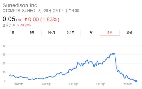 SunEdison当前在美国OTC市场的股价仅为每股0.05美元,市值1588万美元。