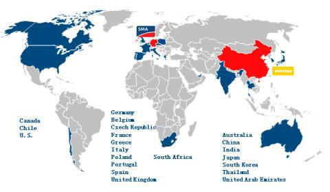 目前,SMA中国˙兆伏爱索拥有1kW至1MW全系列光伏并网逆变器产品、2GW的产能;SMA中国˙兆伏爱索生产的集中型光伏逆变器,已广泛应用到国内沙漠、滩涂、高原等地域的大型光伏电站系统。组串型光伏逆变器已行销海外数十个国家和地区,把太阳能带给了全球用户。同时,通过国内外不断完善的售后服务体系,为客户带来了持续稳定的质量保障以及更多的增值服务。