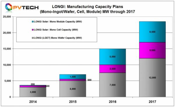 隆基指出,公司旗下300MW硅锭产能扩张和1GW硅片生产扩张已经正处于设备调试阶段,预计可在2017年第四季度内实现全面投产。