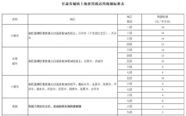 据悉,根据目前甘肃执行的城镇税率,每平米最低1元,最高18元。