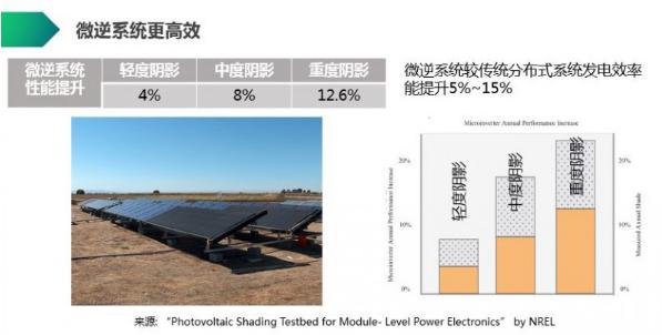 此外,在光伏电站出现问题时,采用传统逆变器的电站会因为局部的故障导致整个电站发电收益的全面降低,而采用微型逆变器的电站,因为其组件级MPPT的特点,仅有故障部分的发电收益出现问题,其余组件仍会继续工作在最大功率点上,收益稳稳的。