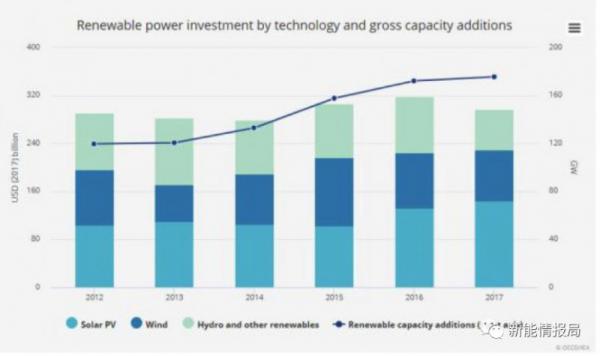 根据IEA的数据,2017年可再生能源的投资下降了7%,甚至投资总额尚未超过3000亿美元。