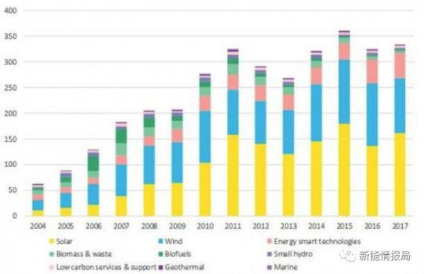 彭博发布的3335亿美元基于“其世界领先的项目和交易数据库”,该数据库专注于“全球可再生能源及智能能源技术的投资”。