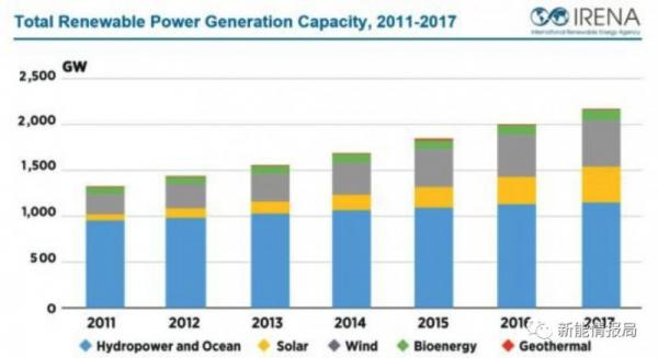 例如,使用这些数据的国际可再生能源机构(IRENA),在其年度可再生能源统计报告中公布的数据,2016年新增的可再生能源发电装机容量为161GW,2017年为167GW。