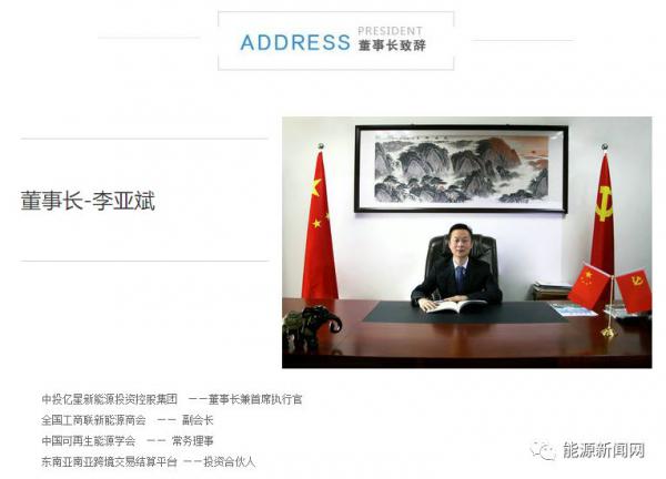 官网显示,中投亿星总部设在北京,注册资金20000万元,是一家致力于投资新能源领域科技的集团公司,集新能源技术研发、高端能源装备制造、提供节能减排技术整体解决方案为一体的大型股份制企业。