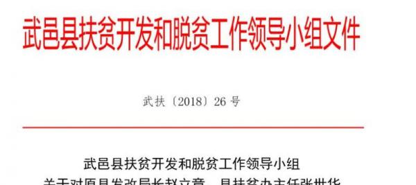 2017年度国家和省脱贫攻坚工作成效考核反馈问题意见中,对武邑县36个村级光伏产业项目招投标环节流于形式问题进行重点通报。武邑县委、县政府对此问题的整改落实高度重视,召开专题书记办公会,成立整改工作小组,制定问题整改工作方案,迅速展开调查,并对照国家要求认真落实整改。经调查,在2016年9月武邑县村级光伏扶贫电站建设项目计划申报和选定合作施工运营企业过程中,由于时间紧、任务重,无法按规定完成招投标程序,决定采用公开比选办法选定投资建设运维企业。但在组织比选过程中,县扶贫办存在比选文件和报价文件有瑕疵,比选过程不严谨等问题,该项目没有进行公示公告,在实际操作中,没有组织评委会,未出具比选结果报告,未对参与企业的资质进行符合性审查。县发改局作为项目申报牵头部门,县扶贫办作为项目具体负责实施单位,对这一问题产生负有直接责任。经县扶贫脱贫领导小组研究,决定对原县发改局长赵立章、县扶贫办主任张世华两名同志予以通报批评。