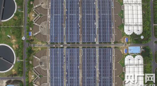城市里,每个污水处理厂都有大面积的水处理水池,简单来说,这个项目通过在污水处理厂的氧化沟和沉淀池上方的空间布排光伏组件,实现空间资源的综合有效利用。王小郢污水处理厂分布式光伏发电项目占用空间面积约11万平方米,通过无人机航拍,可以看到整齐排列的光伏板反射出的光格外耀眼。据悉,这也是目前国内并网规模最大的污水处理厂分布式光伏电站项目。