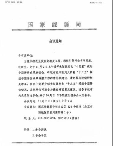2018年11月2日上午,国家能源局召开关于太阳能发展“十三五”规划中期评估成果座谈会,商讨“十三五”光伏发电及光热发电等领域的发展规划目标的调整。十几个省份的能源主管部门、国家发改委能源研究所、电力规划设计总院、水电水利规划设计总院等研究机构及中国光伏行业协会等行业协会及电网企业和十几家光伏企业的代表参加了会议。