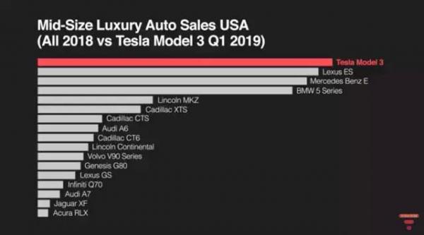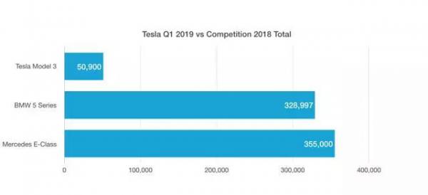 我看好特斯拉,但我仍然非常现实。有很多人并没有包括那些拥有大量社交媒体粉丝的人。我做了一个视频,你可以在文章的最后看到,这是对Ben Sullins的一个视频的回应。Ben Sullins是一个拥有超过12万用户的特斯拉YouTuber,他拥有一个免费的特斯拉Roadster创始人版。本*苏林斯(Ben Sullins)在视频中称特斯拉的销售业绩是“巨大的成功”,并称该公司“摧毁了竞争对手”,但他在视频中使用了高度不准确的销售信息。他使用了下面的图表,将特斯拉第一季度的全球销量与竞争对手2018年全年仅在美国的销量进行了对比。如图所示,他认为特斯拉仅在2019年第一季度的销量就超过了2018年全年的销量。他的视频在不到四天的时间内被浏览了近7.5万次,这是一个广泛传播的错误信息,所以出于无奈,我制作了下面的回复视频(截止到写作时只有1000次浏览)。