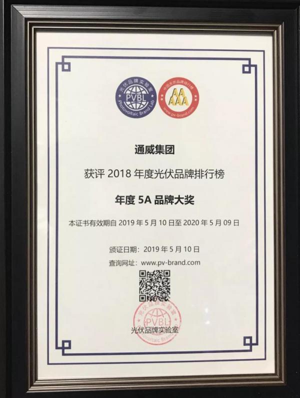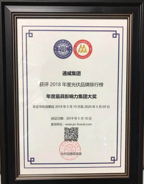 5月10日,光伏行业顶级盛会——“PVBL 2018年度中国光伏品牌排行榜”在上海重磅发布。通威集团作为中国乃至全球光伏新能源产业的核心参与者和主要推动力量,荣膺“年度最具影响力集团大奖”和“年度5A品牌大奖”两个重磅奖项。