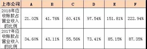 一方面,应收账款占比不断攀升。从统计数据来看,6家上市公司中,除了2家之外,其余4家的应收账款比例在2018年都在大幅上升。其中,上升最高幅度达到135.59%,高额的应收占比也意味着企业或面临巨大的财务风险。