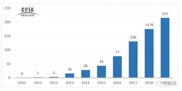 中国太阳能光伏发电装机累计容量(单位:GW)