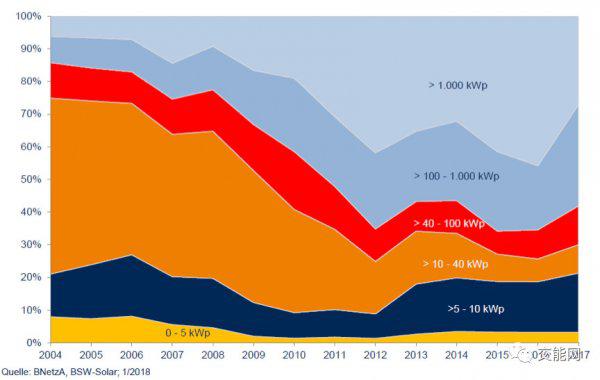 在德国,光伏电站的年运营成本约为投资成本的1%,相对较低,同时当前的低利率也有利于控制融资成本。当下光伏组件的价格几乎是光伏电站投资成本的一半,这也是大型电厂增加的原因。