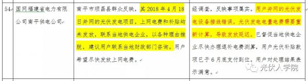投诉问题4:2018年4月18日并网的光伏发电项目,上网电费和补贴均未发放,联系当地供电企业,以各种理由推脱,建议用户联系当地财政部门咨询。