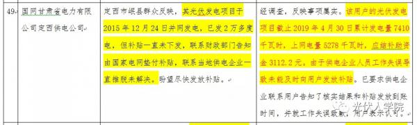 原因:该用户的光伏发电项目截止2019年4月30日累计发电量7410千瓦时,上网电量5278千瓦时,应结补助资金3112.2元。由于供电企业人员工作失误导致未能及时向用户发放补贴。