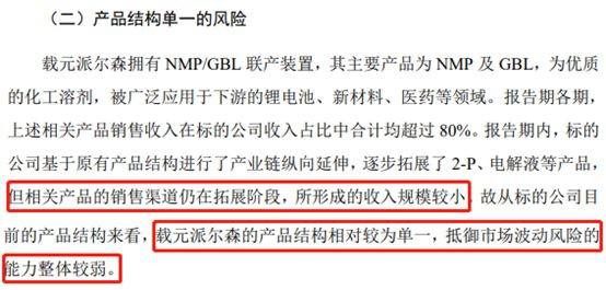需要留心的是,公司在草案中明确提示了载元派尔森产品结构单一的风险。目前载元派尔森的产品主要用于锂电池领域。而当前动力锂电池在相关政策和汽车市场遇冷等因素的影响下,不确定性增大。未来载元派尔森的持续盈利能力值得关注。