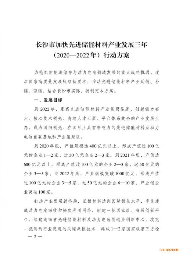 湖南长沙市人民政府办公厅印发《长沙市加快先进储能材料产业发展三年(2020-2022年)行动方案》。方案指出,将基于新能源汽车、能源储能、3C产品电源、基站储能等应用领域的新要求,围绕驱体材料及资源循环利用、动力电池材料等业重点领域实施一批重大专项和重点研发划。2020年-2022年,每年设立市级先进储能产业发展专项资金5000万元,相关区县、园区管委会分别按照不少于市级出资进行配套,用于支持先进储能材料产业集聚重大平台、重点企业、示范项目、行业交流活动等,市级各类政策及专项资金加大对先进储能材料产业倾斜力度。目标到2020年底产值规模达400亿元以上,到2022年底产业规模突破1000亿元,产业链企业突破100家,成为国內领先、在国际上具有影响力的先进储能材料及动力电池重要基地和产业集聚区。