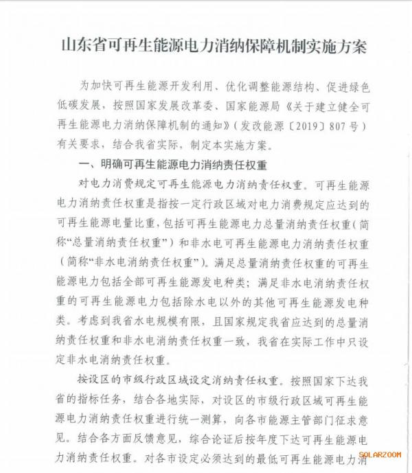 《山东省可再生能源电力消纳保障机制实施方案》解读