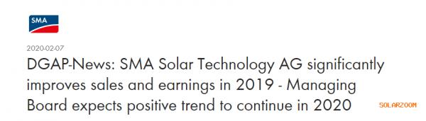 逆变器供应商SMA近日公布了其2019年全年的运营状况——2019年销售和收入双增长,2020年将继续保持高速稳定增长。