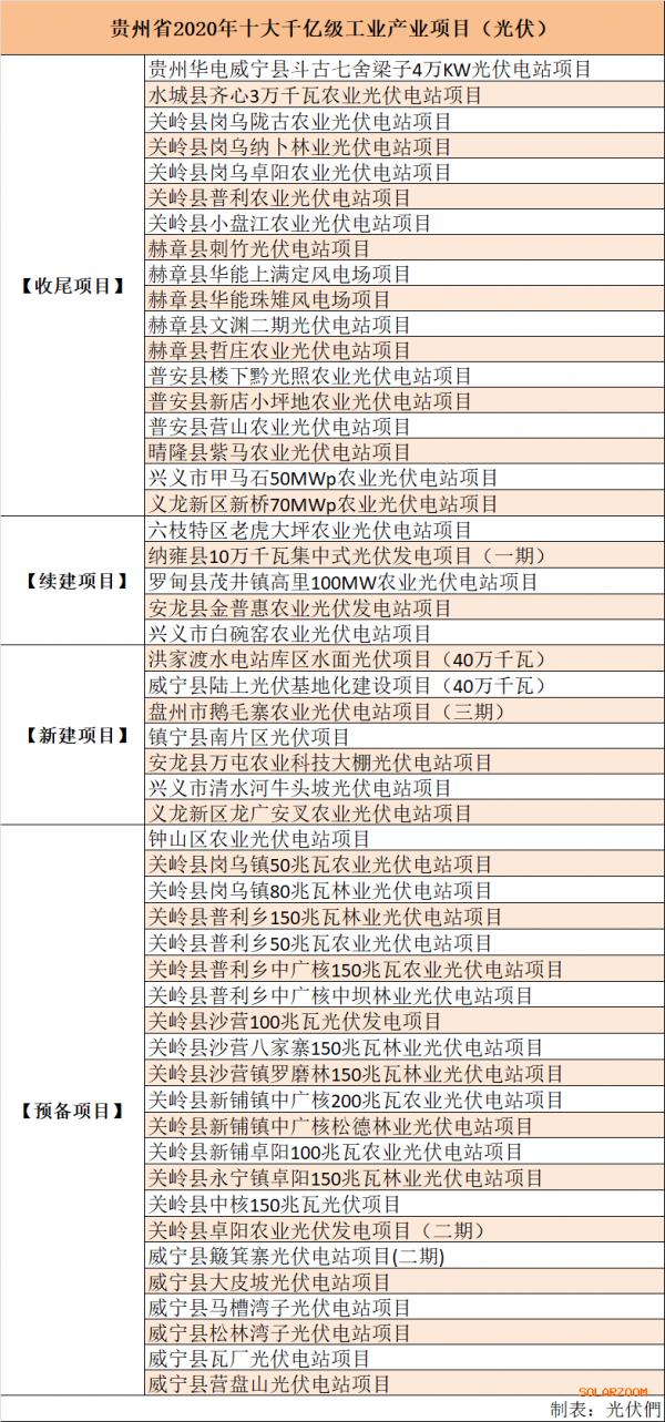 涉及52个光伏项目,贵州省下达2020年重大工程和重点项目名单