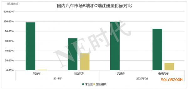 除整体车市较差影响外,补贴退坡导致其与燃油车在消费端相比成本处于劣势,C端消费市场无法快速渗透。保险数据显示,2019年至2020Q1电动汽车C端消费群体比例仅占67%,远少于燃油车市场的98%。