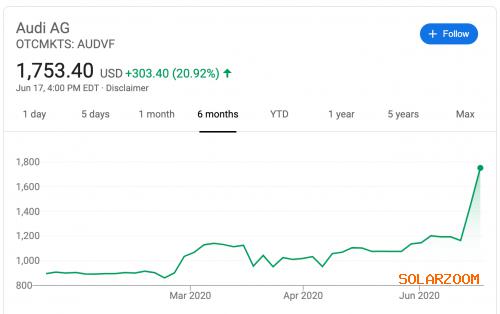 迄今为止,大众集团拥有奥迪99.64%的股份,剩余0.36%仍被几位少数股东紧握手中。当地时间6月16日,大众集团表示,将支付48%的股价溢价,以每股1551.53.欧元的价格从这些股东中买入剩余股份。据Refinetiv的数据,周二当天奥迪股价一度报1050欧元/股,大众相当于以2.37亿欧元的价格入手15.2749万股奥迪股票。