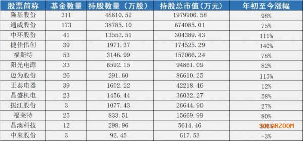 在二季度基金重仓股名单中,13家光伏公司成为抢筹对象。