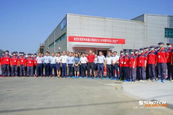 2020年8月18日,尚德常州组件生产基地3.5GW高效组件扩产项目正式投产,武进国家高新区管委会副主任姚祥先生,尚德新能源投资控股有限公司总裁唐骏先生,无锡尚德执行总裁何双权先生,无锡尚德副总裁曹晓荣先生,常州尚德总裁查方霞女士,常州尚德副总裁刘斌先生,常州尚德副总裁瞿辉先生,常州尚德副总裁郑亚峰先生,常州尚德运营总监杨建波先生出席投产仪式。
