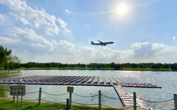 近日,首都机场附近的西湖建设了一座小型的漂浮式分布式光伏电站,据新京报报道,该项目的设计容量为81.84千瓦,储能容量为400千瓦时,融光伏+储能+应用为一体,能有效地帮助机场调节峰谷用电。预计全年发电量可达9万千瓦时,可供10个高杆灯工作2500小时,节约电量折合电费约10.2万元,整个生命周期内可节约电费约255万元。据了解,作为“用能大户”,首都机场2016年便在3号航站楼停车楼建设了分布式光伏项目。