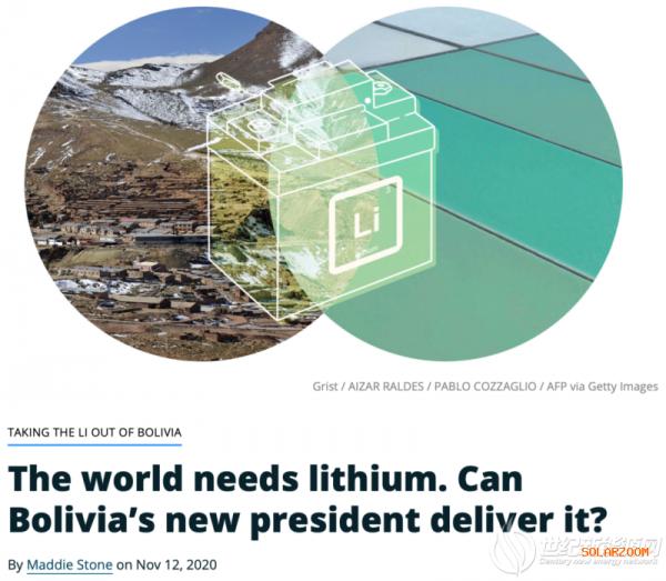 Grist网站发表署名Maddie Stone的文章,题目是:The world needs lithium. Can Bolivia’s new president deliver it?(世界需要锂,玻利维亚的新总统能保障供应吗?)。