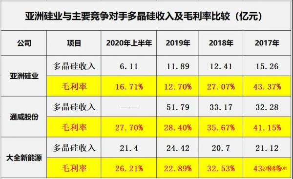 亚洲硅业解释,“2018年、 2019年,公司多晶硅毛利率显著低于同行业公司,主要因公司多晶硅生产用电价格较高所致。”