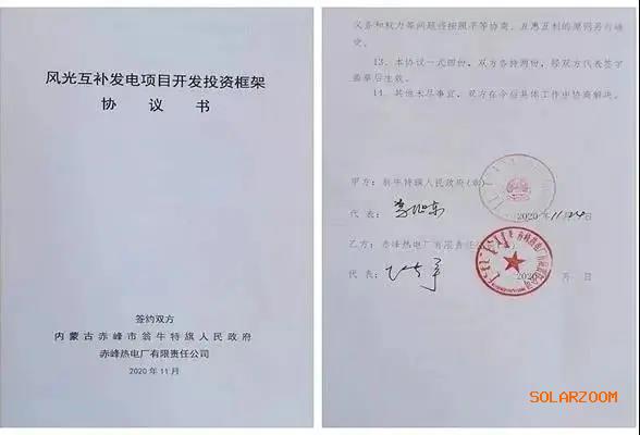 11月26日,赤峰热电厂有限责任公司与翁牛特旗人民政府签署了《风光互补发电项目开发投资框架协议书》,双方本着“优势互补、互利互惠、共同发展”的原则,共同开发翁牛特旗风光资源,规划装机容量为500MW风电项目和300MW光伏项目。