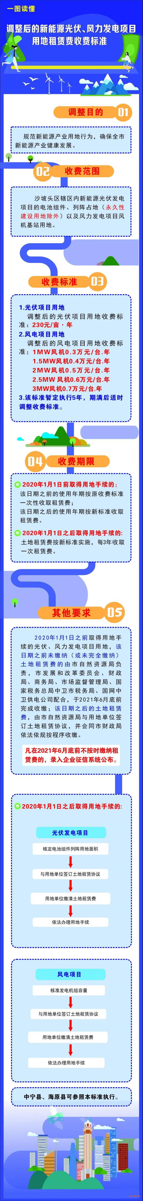 近日,中卫市为规范新能源产业用地行为,确保全市新能源产业健康发展,决定对沙坡头区新能源光伏、风力发电项目土地租赁费收费标准进行调整。具体调整如下: