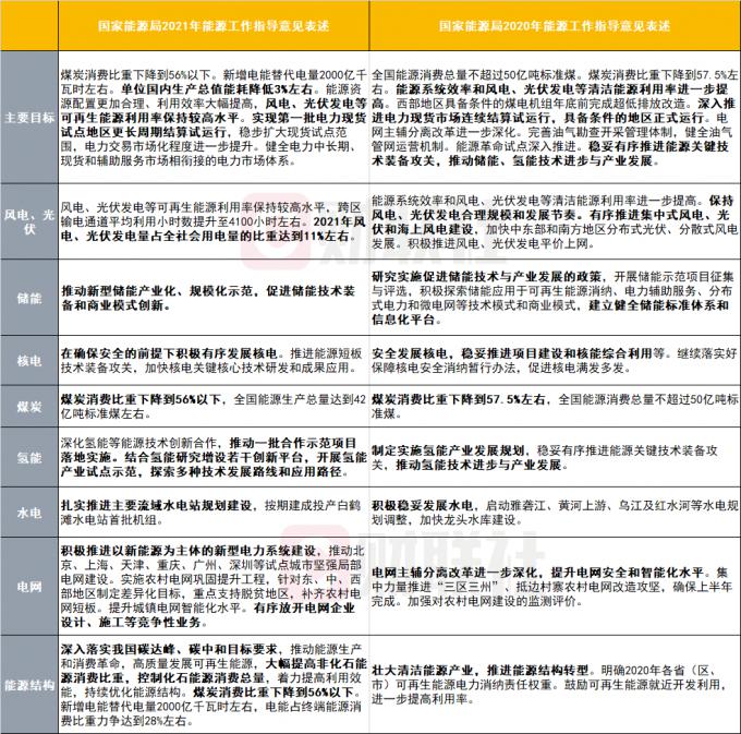 国家能源局印发《2021年能源工作指导意见》,2021年的预期目标煤炭消费比重下降到56%以下。新增电能替代电量2000亿千瓦时左右。单位国内生产总值能耗降低3%左右。能源资源配置更加合理、利用效率大幅提高,风电、光伏发电等可再生能源利用率保持较高水平。实现第一批电力现货试点地区更长周期结算试运行,稳步扩大现货试点范围,电力交易市场化程度进一步提升。健全电力中长期、现货和辅助服务市场相衔接的电力市场体系。