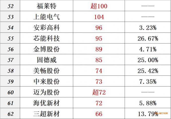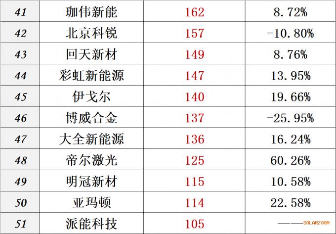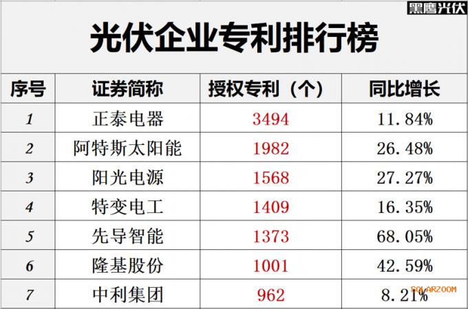 从增长速度看,至少52家光伏企业拥有的授权专利实现正增长,38家企业增长在10%以上。